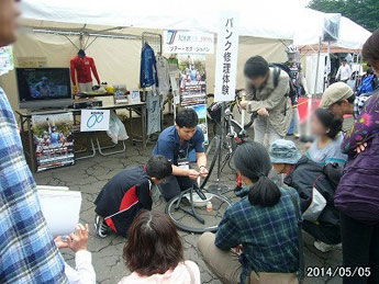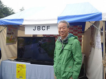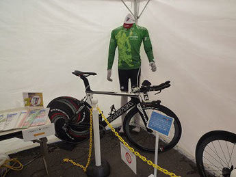 第17回大会のリーダージャージや、過去大会のプログラム、グッズ等を展示。前回大会の映像も。