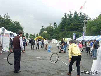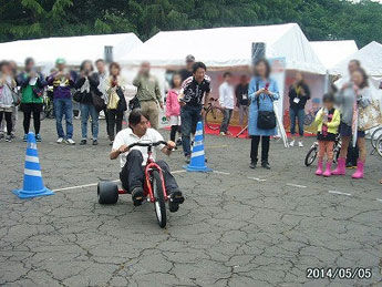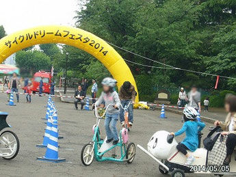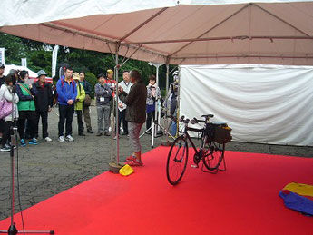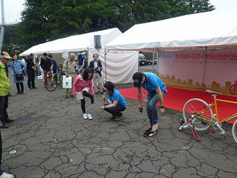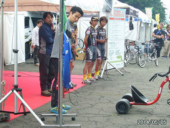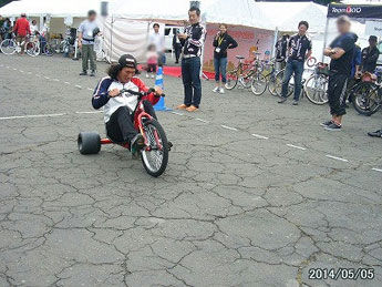 ステージの合間には、大人の自転車部による、大人の三輪車タイムトライアルが…