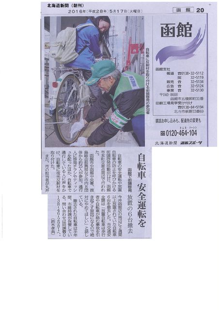 5月の自転車月間中に行っております、「自転車利用のルール遵守・マナー向上キャンペーン(バイコロジー統一キャンペーン)」について、地元紙に掲載されましたので、ご紹介いたします。