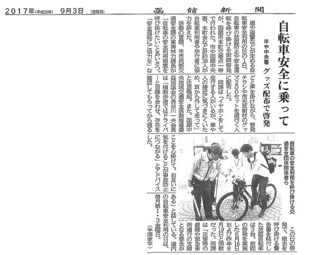 函館新聞2017年9月3日(日)付