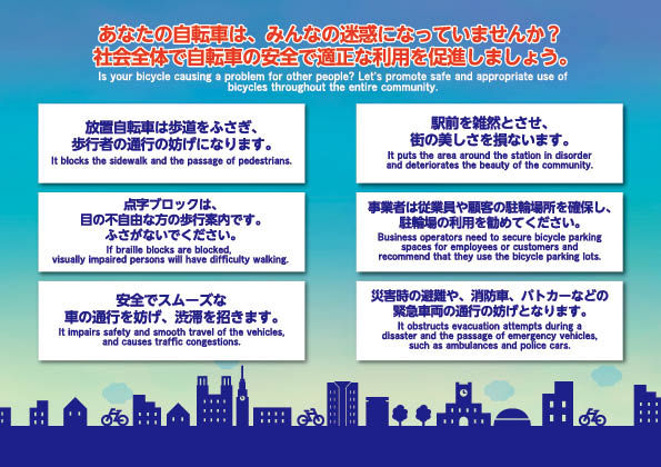 自転車の放置防止の呼びかけ、啓発チラシ入りティッシュの配布
