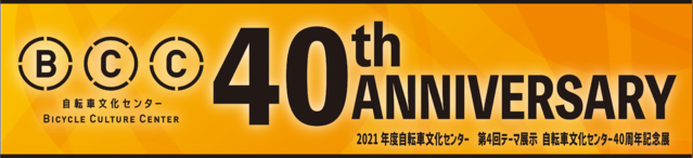 令和3年5月、自転車文化センター(BCC)は開設して満40年を迎えました。 今回の展示においては、BCCの活動内容が分かるパネル展示、40年間のイベントの歩みが分かる大年表の展示や40年にまつわる自転車の展示などを行います。 BCCの魅力をもっと多くの方へ発信することを目的として、本展示を開催します。