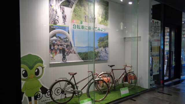 ・ナショナルサイクルルートや全国のサイクリングマップなどの掲出、配布などと共に人気自転車を展示。