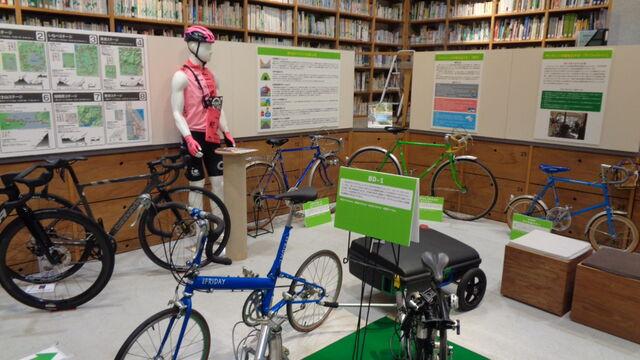 ・自転車月間(サイクルドリームフェスタ、ツアー・オブ・ジャパン)の紹介、サイクリングの様々な楽しみ方(街ポタリング、輪行旅、サイクルトレイン、バイクキャンプ、旧街道ロングライド等)を実物自転車、用具類やパネルにより紹介。