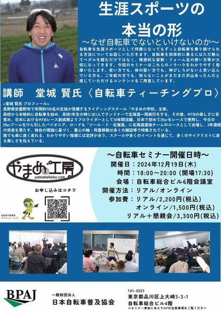 終了しました!】令和6年度第3回自転車セミナー/講師:堂城 賢氏 (自転車ティーチングプロ) 12月19日(木)18:00~20:00