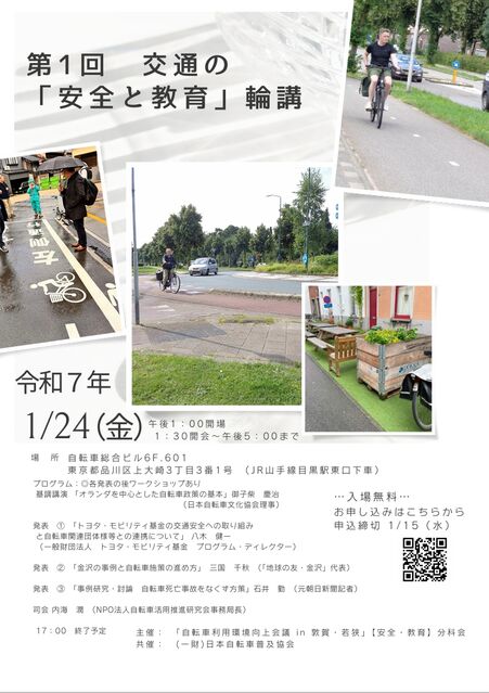 主催:「自転車利用環境向上会議in敦賀・若狭」【安全・教育】分科会 共催:(一財):日本自転車普及協会 申込締切:1月15日(水)QRコードによる申込